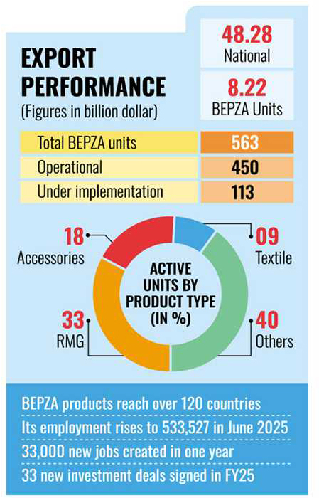 He added that BEPZA's continued focus on diversification, investor support services, and the expansion of industrial space has positioned it as a major contributor to Bangladesh's export performance and employment generation.