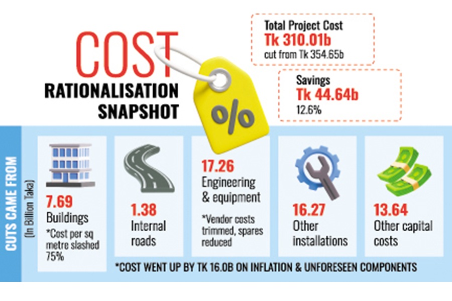 Other capital costs have been reduced from Tk 51.80 billion to Tk 38.15 billion, cutting Tk 13.64 billion by optimising supervision costs, EPC contractor overheads, and engineering design elements.