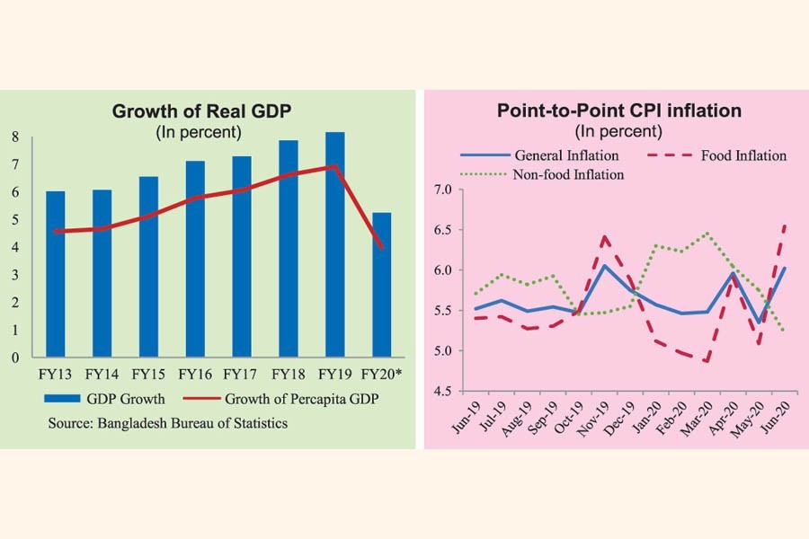 Nonetheless, the preliminary estimations by the Bangladesh Bureau of Statistics (BBS) suggested that real GDP growth dropped to 5.24 per cent in FY 20 from 8.15 per cent in FY 19.