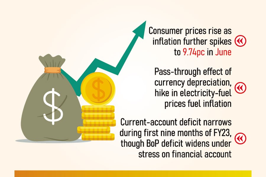 Regarding wayward inflation--which hits hard fixed-income groups through price spirals-it show the headline Consumer Price Index (CPI) has followed an upward trajectory, rising to 9.33 per cent in Q3FY23 from 8.71 per cent in Q2FY23. The inflation surged to 9.74 per cent in June, says the BB findings report.