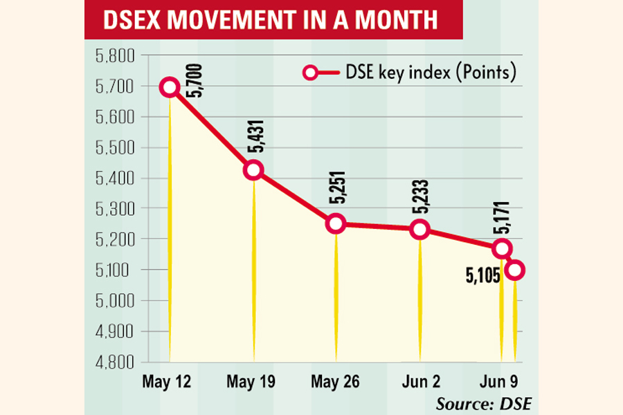 That resulted in the prime index of the Dhaka Stock Exchange (DSE) plunging to a 39-month low of 5,105 points on Monday. The market-value shed Tk 1.54 trillion since January when the regulator finally gave up its control over stock prices.