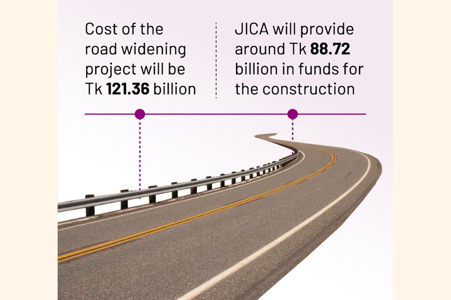 According to state-run road developer RHD, the total cost of the road-widening project will be Tk 121.36 billion.