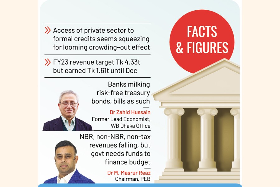 "So, the government revenues from NBR, non-NBR and non-tax sources are falling. But the government needs funds to finance the budget. That's why the government domestic borrowing keeps mounting," he said.