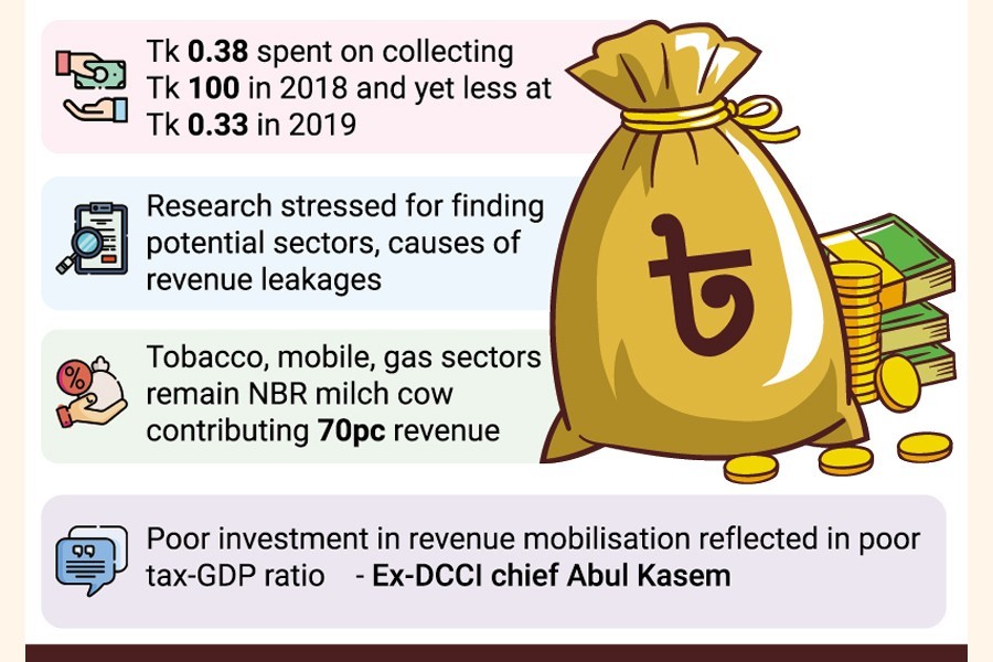 Except for this expenditure, the NBR spent Tk 0.28 for collecting Tk 100 in tax revenue, the annual report said.