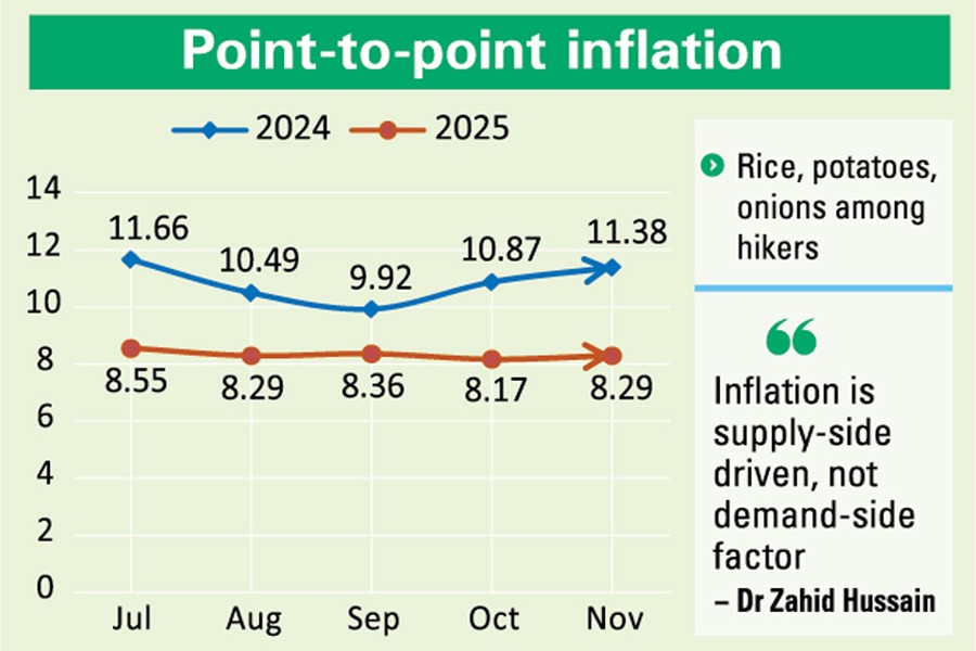 "To my mind, the higher inflation is supply-side driven, not demand-side," says Dr Zahid Hussain, an independent economist, adding that November is typically a lean season when prices of many key commodities - rice, potatoes, onions-tend to rise.