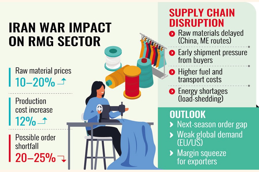 Bangladesh's readymade garment sector is facing mounting pressure as the ongoing Middle East conflict disrupts supply chains, drives up input costs and dampens global demand.