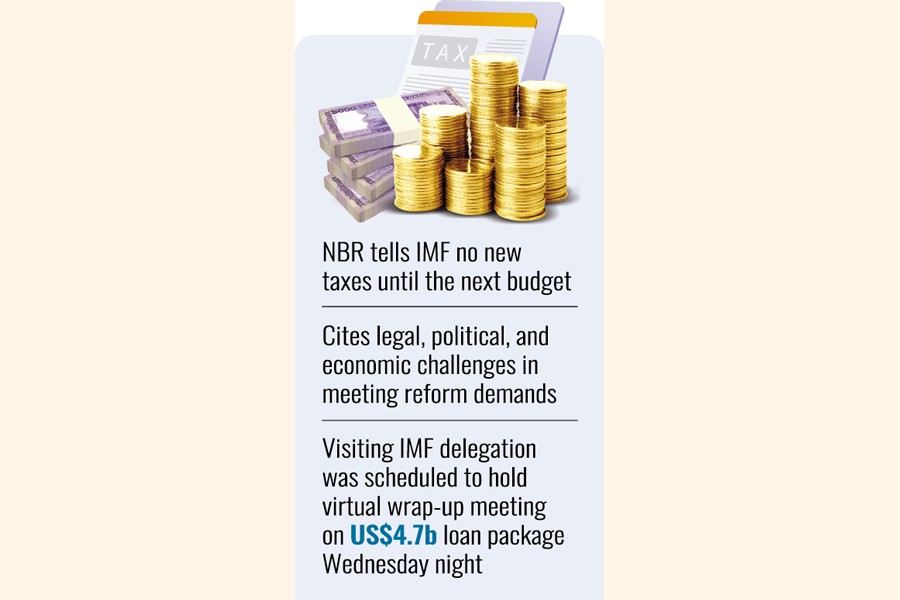 The decision was conveyed during a recent meeting between the NBR and the visiting IMF review mission, which is in Dhaka to assess progress under Bangladesh's US$4.7 billion loan programme.