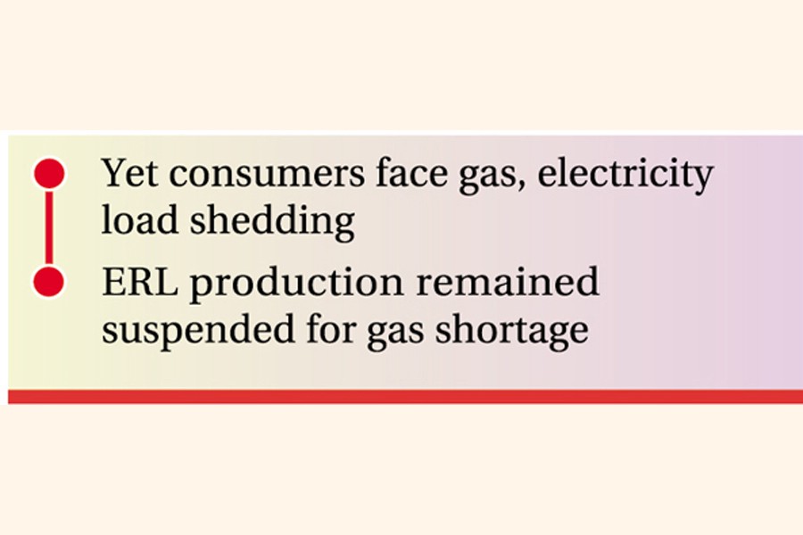 Bangladesh's lone crude oil refinery - Eastern refinery Ltd (ERL) - with an annual capacity of 1.50 million tonnes remained shut since last Saturday morning due to the gas crisis, said a senior official at the state-run Bangladesh Petroleum Corporation (BPC). It would take 5-6 days to resume operation, he added.