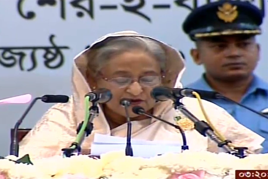 Prime Minister Sheikh Hasina started addressing a press conference at 3:00pm on Friday on budget at Bangabandhu International Conference Centre in Dhaka as Finance Minister AHM Mustafa Kamal fell ill.