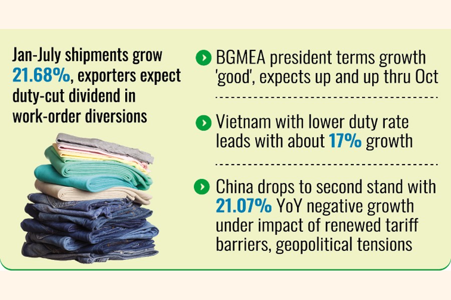 Bangladesh's apparel export to the United States posted a robust 21.68-percent growth in the first seven months of 2025 and exporters expect a better tomorrow as Trump tariff turmoil changes trade equations.