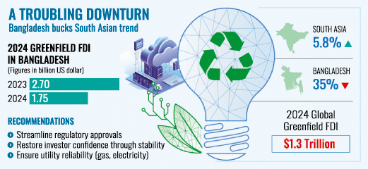 Sharp 35pc fall in greenfield FDI in 2024 puts Bangladesh at odds