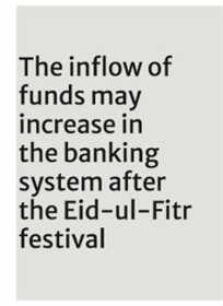 "The inflow of funds may increase in the banking system after the Eid-ul-Fitr festival," the central banker predicted.