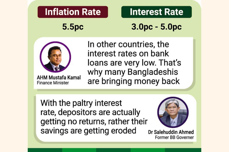 Contacted, former central-bank governor Dr Salehuddin Ahmed said with the paltry interest the depositors are actually getting no returns rather their savings are getting eroded.