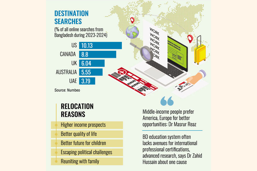 "Actually, middle-income people prefer America and Europe for better opportunities," says Dr M Masrur Reaz, chairman of the Policy Exchange of Bangladesh.