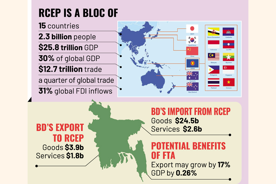 A study conducted last year by Bangladesh Trade and Tariff Commission (BTTC) showed Bangladesh's trade with RCEP- member countries mostly concentrated on trade in goods.