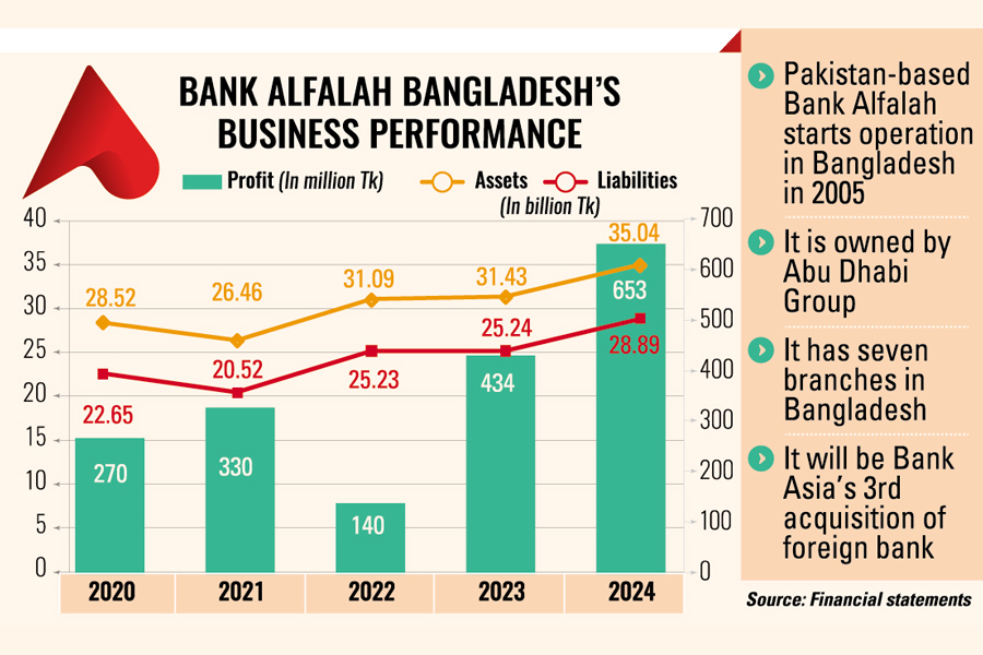 In April last year, Bank Asia's board approved, in principle, negotiated acquisition of assets and liabilities of Bank Alfalah's Bangladesh part.