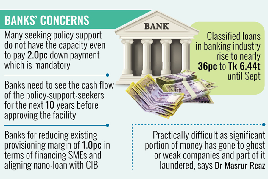 At the same time, he says, the commercial banks need to see the cash flow of the policy-support-seekers for the next 10 years before approving the facility to them. "The fact is majority of them do not have cash flow, which needs to be certified by a registered auditor. In fact, most of them are not eligible to get such support."