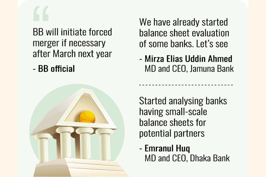 Contacted, managing director and chief executive officer of Dhaka Bank Emranul Huq said they had started analysing banks having small-scale balance sheets for potential partners.