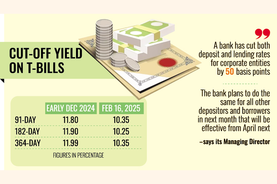 But since early December last, the cut-off yield gains from treasury bills (T-bills) and bonds (T-bonds) continue falling, which, in fact, forces the bankers to go for a revision of the interest arithmetic despite the tight monetary-policy stance of the Bangladesh Bank (BB), the country's central bank, to squeeze money supply in a prolonged inflation combat.