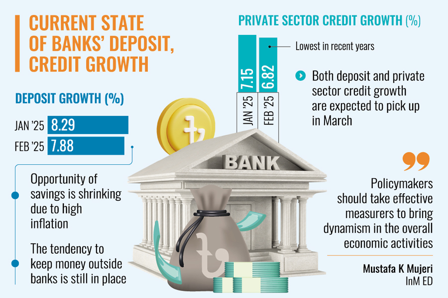 "Policymakers should take effective measures to bring dynamism in the country's overall economic activities and that will help enhance deposit growth," Mustafa K Mujeri, executive director at the Institute for Inclusive Finance and Development (InM), told the FE.