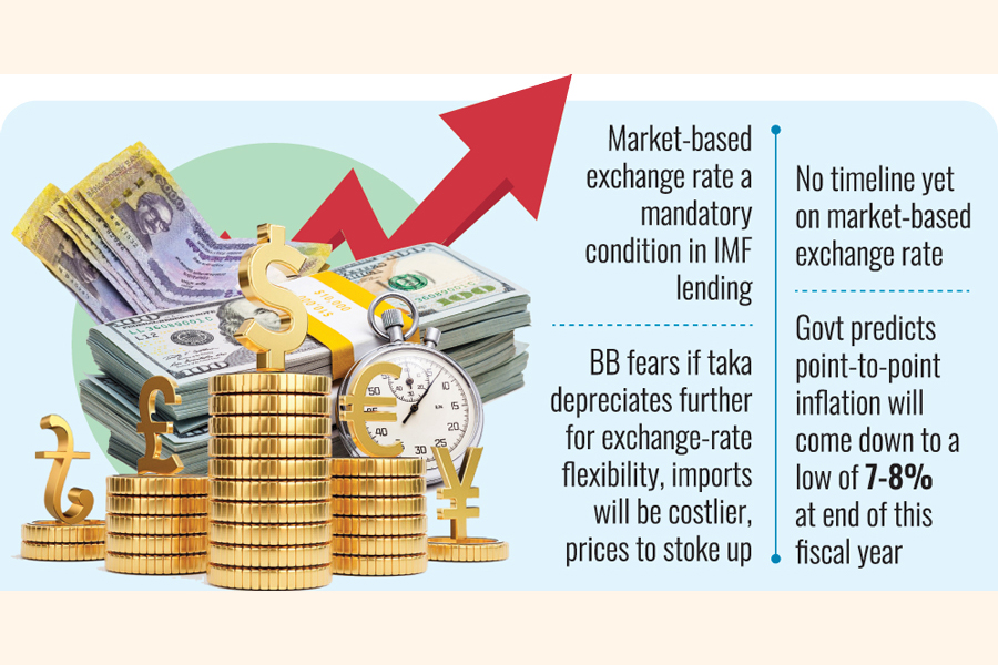Another finance division official says the central bank wants to pursue a "wait-and-see" policy before deregulating the exchange rate. "The beginning of market-based exchange rate will depend on resilience power of our market." The IMF team is due in Dhaka early next month to conduct the fourth review of the $4.7-billion loan programme. If the team finds the achievements satisfactory, they will recommend the IMF board to release the fifth tranche amounting to $530 million by June along with the deferred fourth tranche of $645 million that remained pending since February.