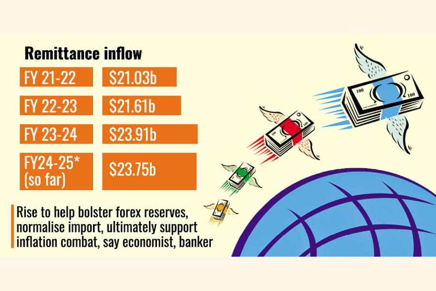 Citing the current trend in inbound remittance, he said the remitters sent $93 million daily on average. With this pace, the receipt is expected to cross $24-billion mark within this month and break the record maximum by early next month.