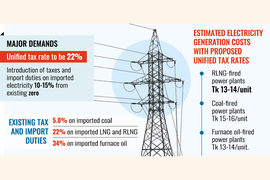 Bangladesh Independent Power Producers Association (BIPPA) has sent a letter recently to the National Board of Revenue (NBR), seeking a unified tax, value-added tax (VAT) and customs duties for all types of fuels at 22 per cent.