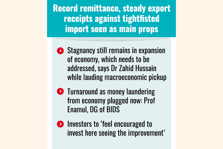 Talking to the FE, Director-General of Bangladesh Institute of Development Studies (BIDS) Prof A.K. Enamul Haque said the significant improvement in BoP is a sign that the interim government has been able to stop money laundering from the economy.