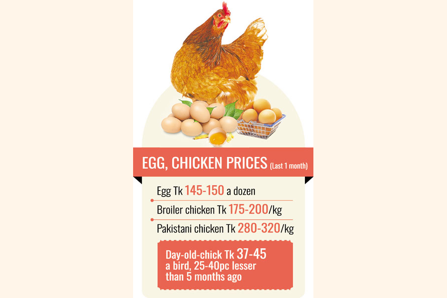 Mahbubur Rahman, president of the Breeders Association of Bangladesh (BAB) and a poultry farm owner, told the FE that the chicken and egg prices have declined notably and the market is static for last one month.