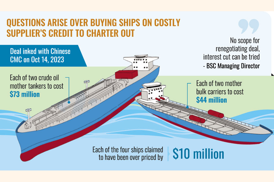 The corporation bought six vessels from China few years back, one of which was destroyed by a missile attack in Red Sea in 2022. None of the five ships comes to Bangladesh and they have been put on chartering. "Whenever we get ships, we will put them on chartering. This is the business." Regarding a question on high price of vessels, he said, "The question you raised about pricing is a sensitive issue."