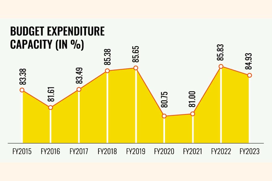 In the last FY, 2023, the government spent Tk 5.758 trillion or 84.93 per cent of the total Tk 6.78-trillion worth of original allocation.