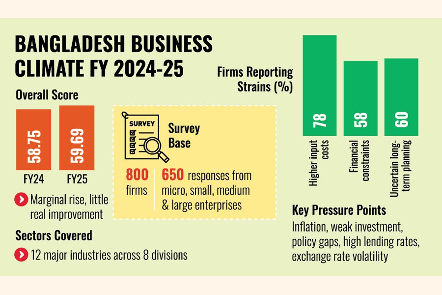 Bangladesh's business environment has shown little sign of progress over the past year, with several key areas even deteriorating, according to the latest Business Climate Index (BBX) for FY2024-25 released on Thursday.