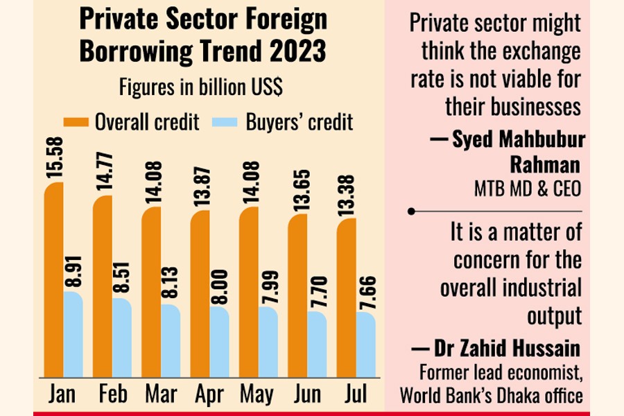 Seeking anonymity, a BB official said the falling trend in buyer's credit is a reflection of the overall drop in the volume of short-term external credits taken by the private players.