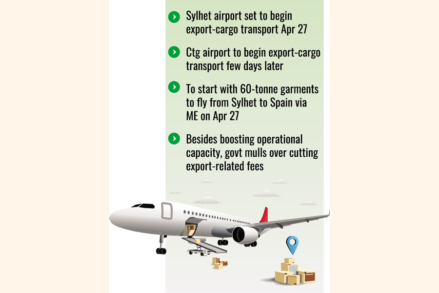 Osmani International Airport in Sylhet is set to begin dedicated international cargo operations on April 27, to be followed by Shah Amanat International Airport in Chattogram a few days thereafter, CAAB Chairman Air Vice-Marshal Md Monjur Kabir Bhuiyan told The Financial Express.