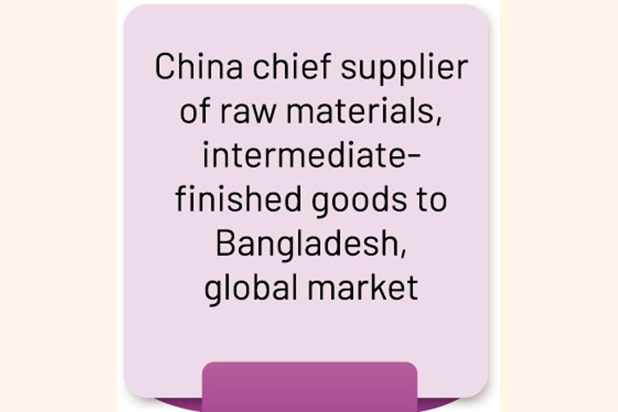 China is now the largest import destination for Bangladesh as the country's manufacturing sector largely depends on imported raw materials and intermediate goods from China.