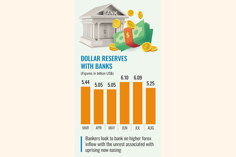 Official data conflated by Bangladesh Bank (BB), the country's central bank, showed that the gross foreign exchange held by commercial banks stood at $5.25 billion in August in a fall of around 15 per cent from $6.09 billion a month before.