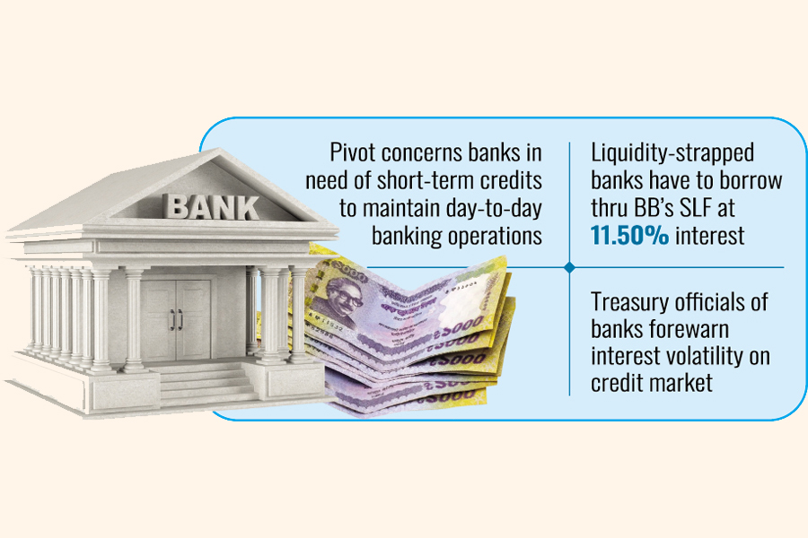 The fund shortage starts prompting the liquidity-strapped commercial lenders to go for costly borrowing from the BB through the SLF instrument where the rate is 11.50 per cent.