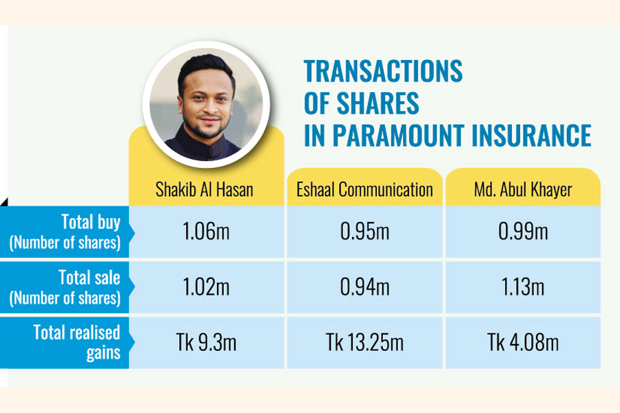 The latest investigation conducted by the Dhaka bourse revealed Shakib, Khayer, and their associates manipulated the share price of Paramount Insurance between August 17 and September 19, 2023.