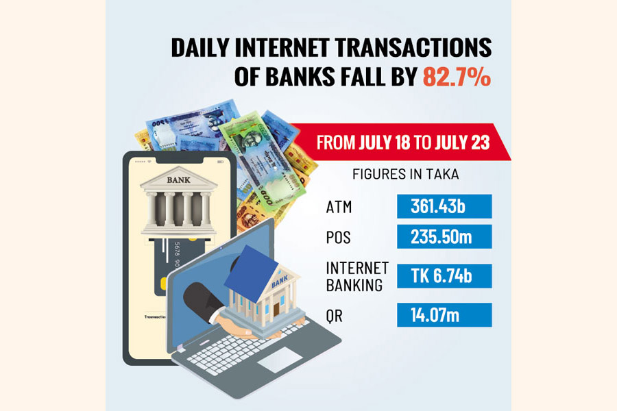 Within a week, internet banking transactions dropped by over 65 per cent, Bangladesh Bank data revealed.