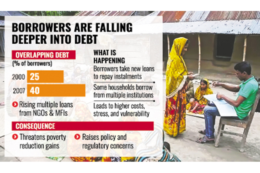 Palli Karma-Sahayak Foundation (PKSF) Managing Director Md Fazlul Kader said the extent of overlapping debt has risen significantly over time, from 25 per cent in 2000 to around 40 per cent in 2007.