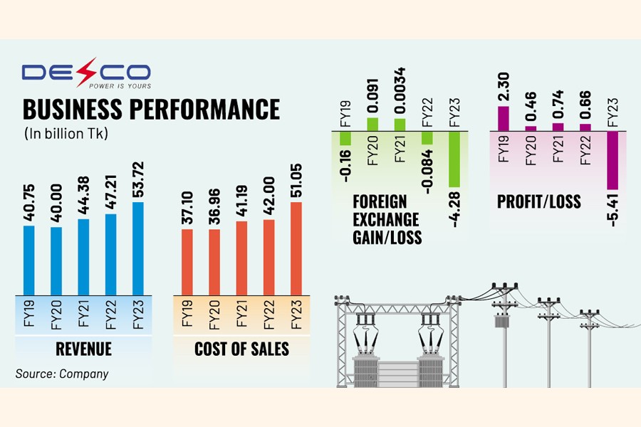 Dhaka Electric Supply Company (DESCO) endured record loss in FY23 for selling electricity with a narrow profit margin and for the faltering taka against the dollar.
