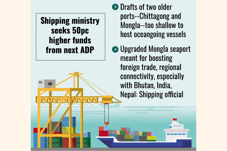 "The Shipping Ministry has sought a massive amount of fund allocations for the Matarbari and Mongla port-development works in the upcoming budget as both the ports have been getting higher priorities in our development agenda," says a senior ministry official.
