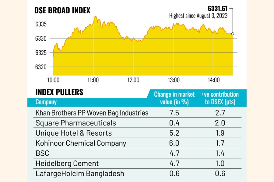 The DSEX, broad index of the Dhaka Stock Exchange (DSE), gained 64 points in the last five sessions and closed at 6331 points on Tuesday. The premier bourse featured a turnover of Tk 8 billion, the highest after September 20 last year.