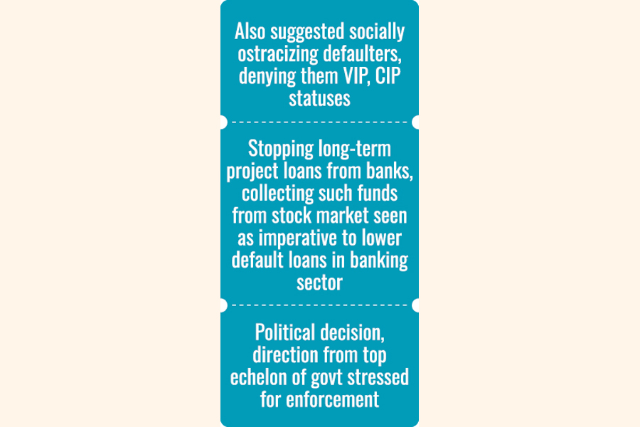 Sources, however said the workshop was told that publishing lists of loan defaulters on the central bank website and barring them from buying assets need political decision and directives from the top level of the government.