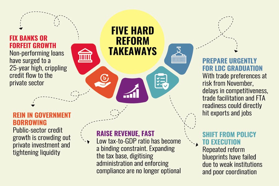 At a high-level discussion in Dhaka, speakers urged the incoming government to move swiftly on banking governance, revenue mobilisation and institutional reforms to secure sustainable and inclusive growth, particularly as Bangladesh approaches graduation from the least developed country (LDC) category later this year.