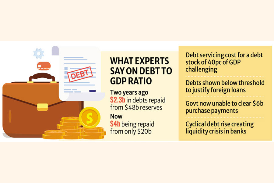 Bangladesh repaid $2.3 billion of debts from $48 billion in reserves two years ago, but now it is paying off over $4 billion from only $20 billion, he said. He also said after graduating from a low income country to a lower middle income one, Bangladesh is not exclusively eligible for International Development Association loans that come with a 0.7 per cent service charge, a 38-year maturity period, and a 10-year grace period. Now the country has to take both concessional and non-concessional loans, Mustafizur said. "The weighted average interest rate on foreign loans reached around 2 per cent. Several costs, including signing money, commitment charges, and front-end fees, are also included."