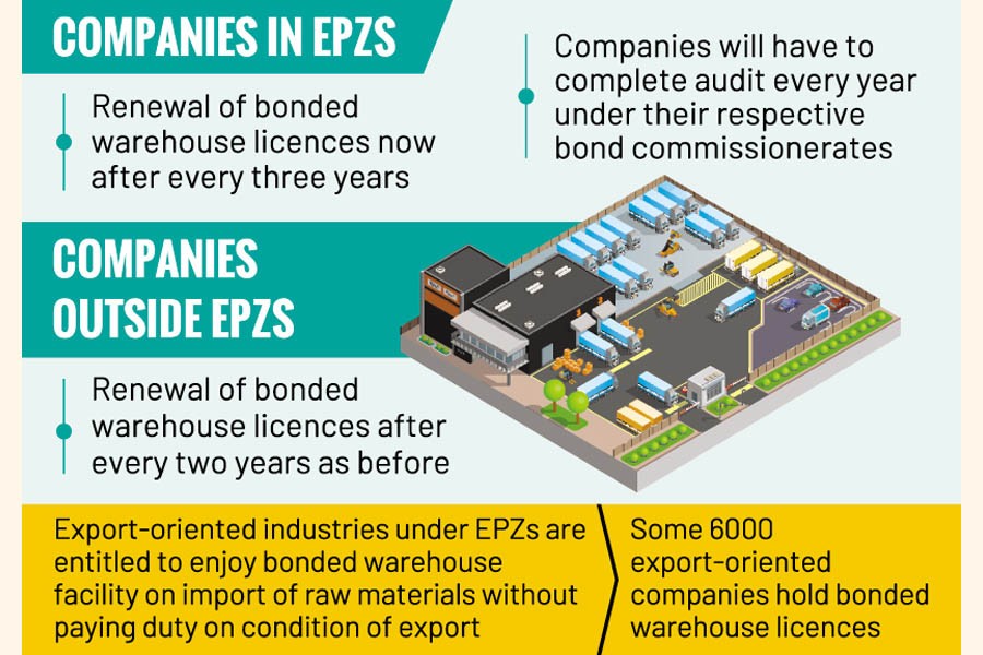 Customs officials said that this facility, valid for a period of three years for bond licence renewal, will be applicable to EPZ companies that perform audits of their export-import activities.