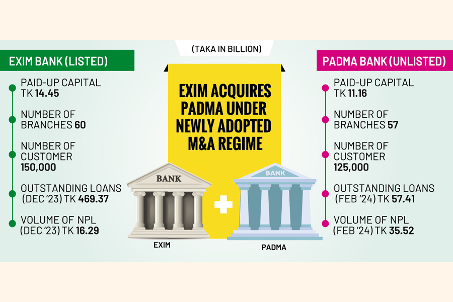 However, the latest development on mergers and acquisitions in the banking sector sparks too many questions, especially about the naming of the merged banks as EXIM is an unconventional or Islamic bank while Padma is a conventional or non-Islamic bank in nature.