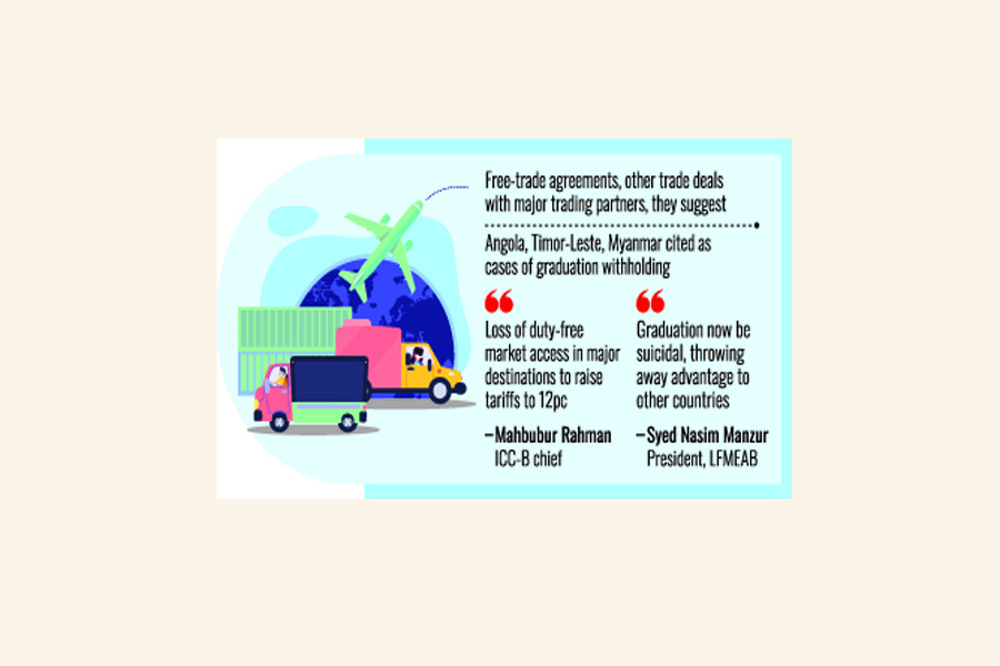 The business magnates also urge the government to go for signing free-trade agreements (FTAs) and other trade deals with major trading partners soon to retain the preferential trade benefit even after the graduation.