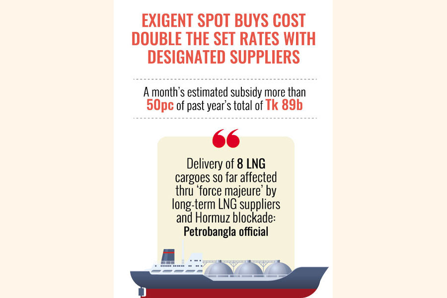 "If the war doesn't stop and the Strait of Hormuz remains restricted for Bangladesh-bound LNG cargoes, Petrobangla's subsidy requirement to import LNG in the current fiscal year, or FY 2025-2026 (July-June), might go all-time high," says the Petrobangla official.
